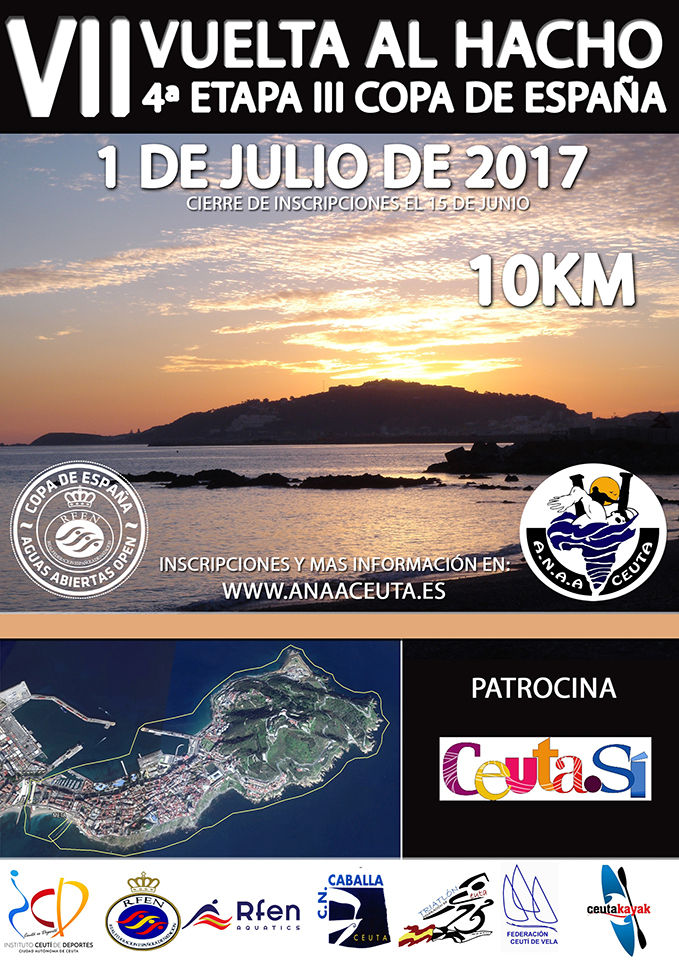 La Asociación a Nado en Aguas Abiertas (ANAA) ha abierto el plazo de las inscripciones de la VII travesía a nado 'Vuelta al Hacho' que se celebrará el próximo 1 de julio en la ciudad autónoma. La prueba, 4ª etapa de la III Copa de España en Aguas Abiertas, ya cuenta con más de 60 inscritos, la mayoría de la Península, habiéndose interesado también nadadores de fuera de España (Australia, Luxemburgo, Gibraltar, Marruecos...) para participar en una travesía de 10 km.