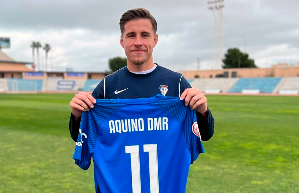 El ariete murciano, hijo del mítico delantero argentino 'Toro' Aquino, es el máximo goleador de cabeza de la temporada 23-24 en Primera Federación. Se formó en la cantera del Real Murcia, con el que debutó en Segunda División con apenas 16 años. Está en el tramo final de una carrera futbolística en la que destacó con las selecciones españolas de categorías inferiores. Formó parte de la Selección Española Sub-17, con la que quedó campeón de Europa y subcampeón del Mundo en el 2007.