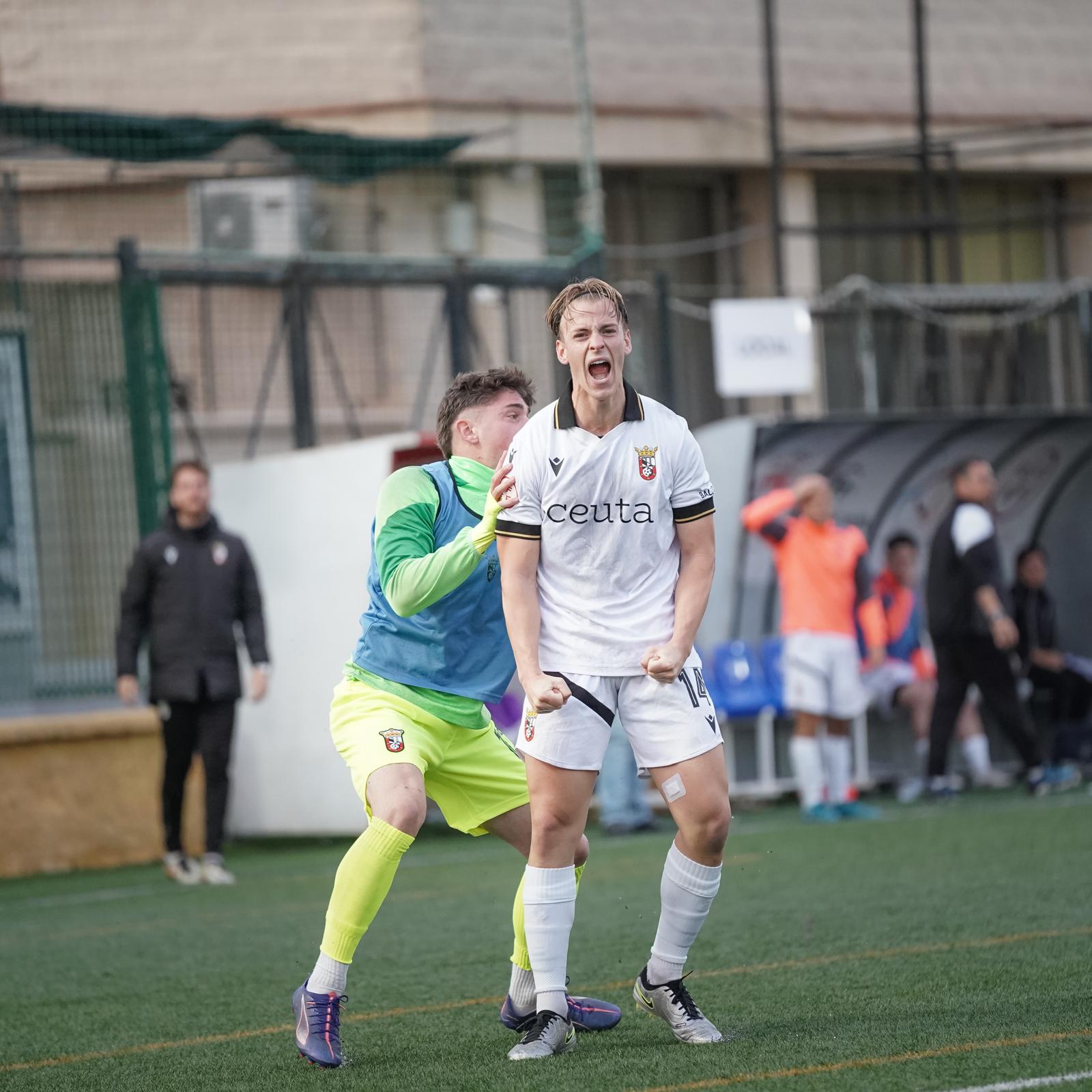 Ñete celebra su gol, que le ha servido al Ceuta B para no caer derrotado en casa