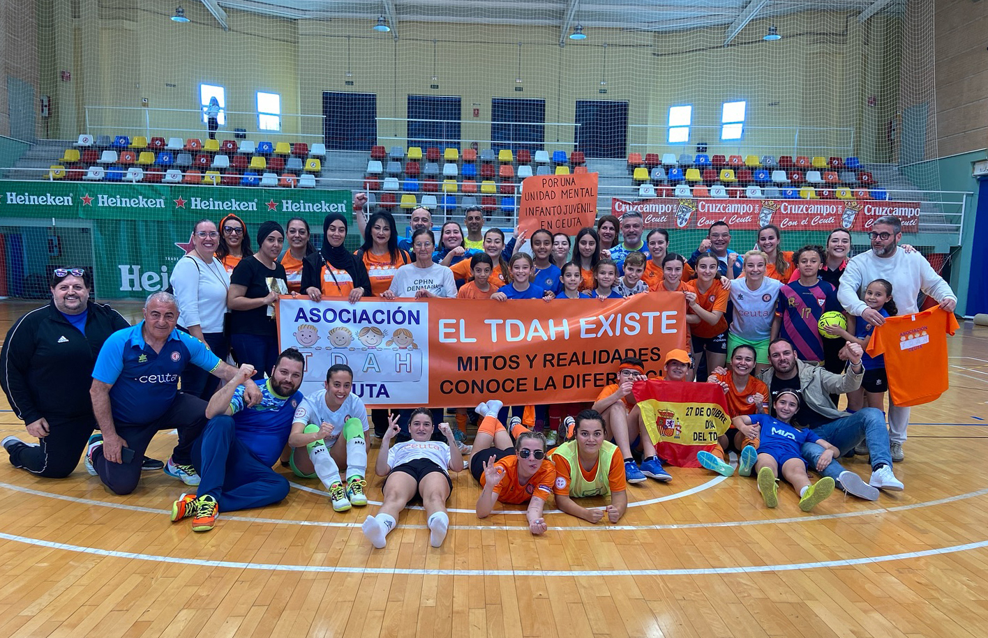 El club ceutí ha celebrado este triunfo con las familias de la asociación TDAH Ceuta, que han bajado a la pista al final del partido para darles visibilidad.