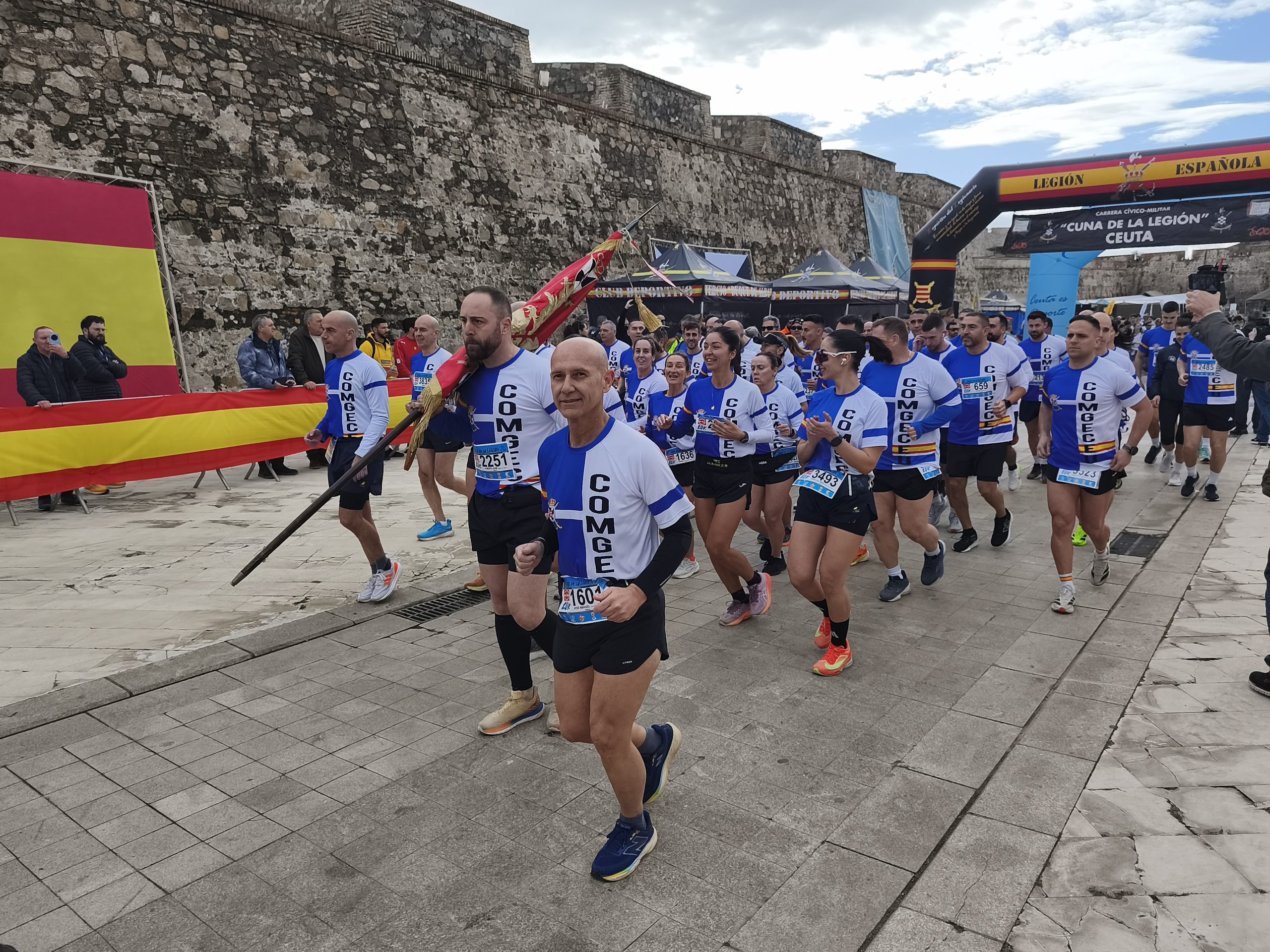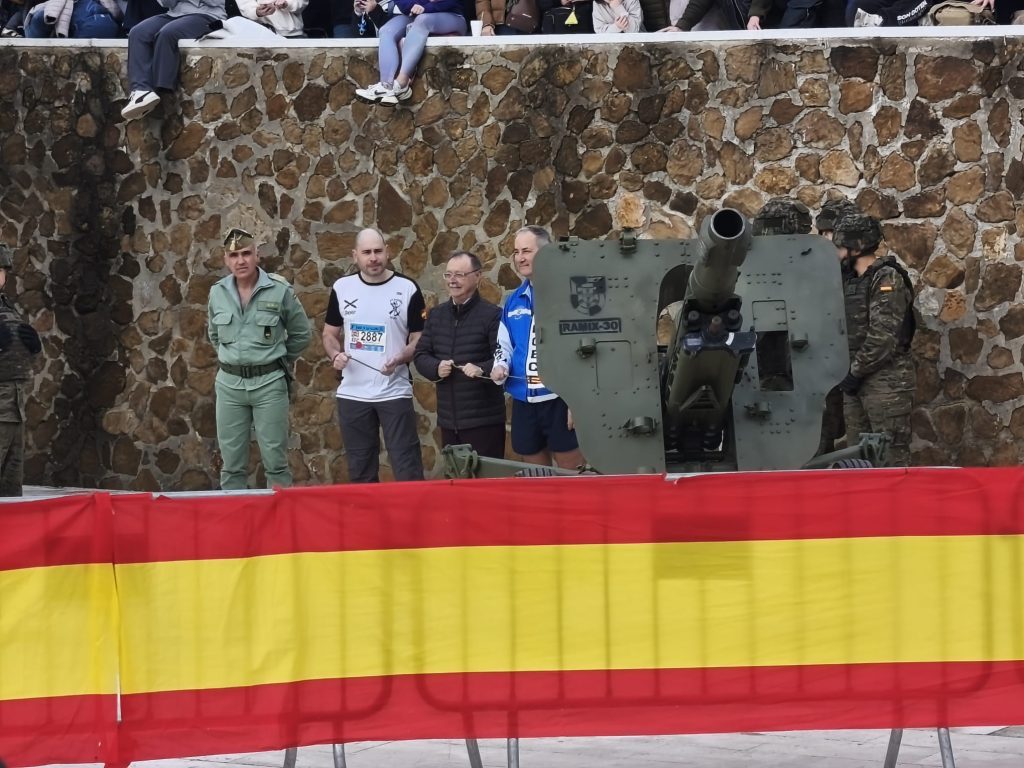 El ambiente se caldeaba desde temprano con los acordes de la banda de la Legión, cuya música servía de latido inicial para los miles de corredores que abarrotaban el patio de armas de las Murallas. El protocolo, cargado de simbolismo, alcanzó su punto álgido cuando el presidente de la ciudad, Juan Vivas Lara, dio el tradicional cañonazo de salida.