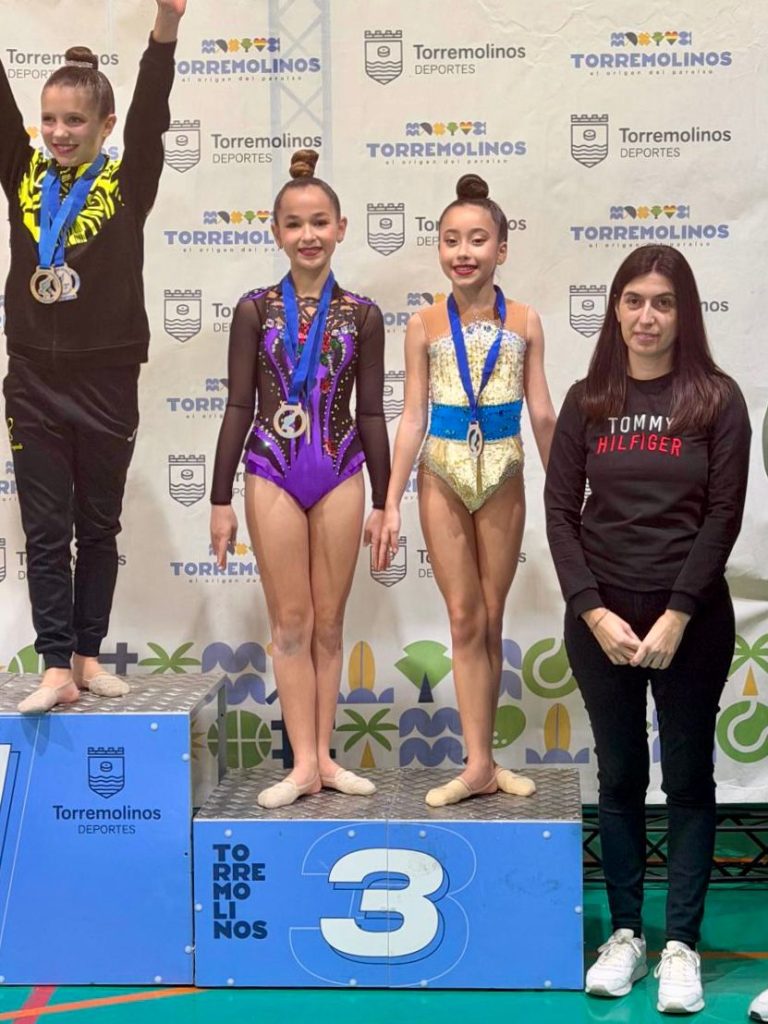 En Torremolinos, la lluvia de medallas continuó. María Alinquer se proclamó oro en Prebenjamín Manos Libres, mientras que Amelia Ballesteros consiguió bronce en Benjamín. En Alevín Nacional, Sofía Ríos sumó una plata con aro, y en Infantil, Andrea Gallego alcanzó el oro con cinta. El equipo Infantil, formado por María Oulad Brahim y Zaira Abselam, logró plata y bronce por equipos.
