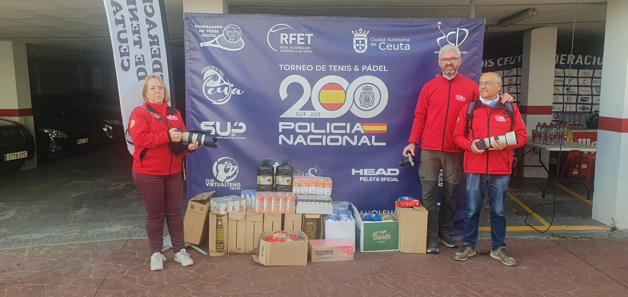 La asociación Fotógrafos Solidarios de Ceuta ha donado este sábado 500 kilos de alimentos no perecederos a la organización del Torneo de Tenis y Pádel del Bicentenario de la Policía Nacional, que viene celebrándose esta semana en las pista del Club Loma Margarita. Esta donación de Fotógrafos Solidarios se sumará a los alimentos recogidos durante la semana del torneo por todos los participantes, familiares, amigos y simpatizantes que han deseado hacerlo.