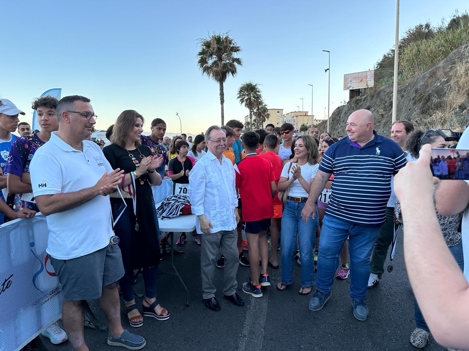 El presidente de la Ciudad, Juan Vivas, acompañado por sus consejeros Nicola Cecchi, Pilar Orozco y Nabila Benzina han estado presentes tanto en la salida de las pruebas como en la entrega de trofeos, al igual que el director general de Deportes, Sergio Aguilera, y la gerente del ICD, Araceli García.